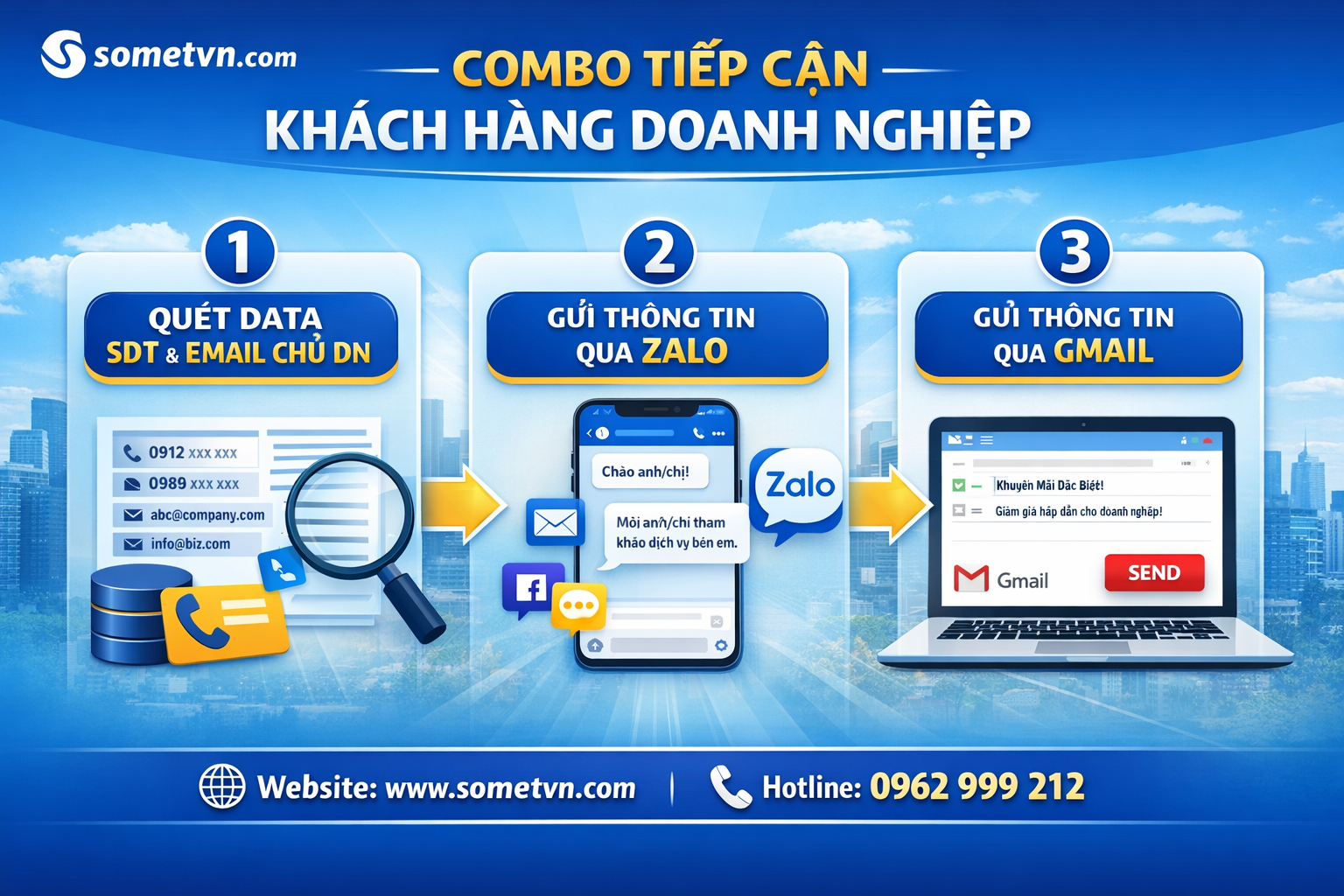 Hiệu quả – Đơn giản – Tiết kiệm là tiêu chí cốt lõi của Somet Việt Nam. Tất cả phần mềm tại Somet như " Somet Zalo – Somet Data - Somet Email ... " và " hệ thống gửi tin nhắn sms không dùng điện thoại " giúp tối ưu thời gian, giảm chi phí và gia tăng doanh số bền vững cho hoạt động kinh doanh của doanh nghiệp.